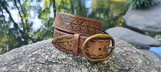 Stamped and carved leather belt