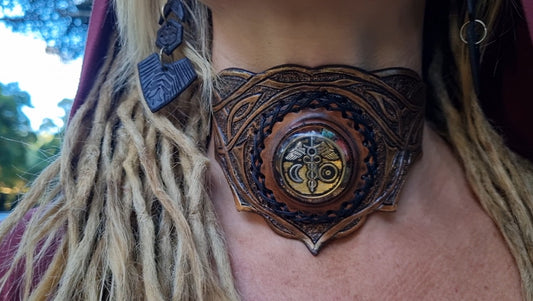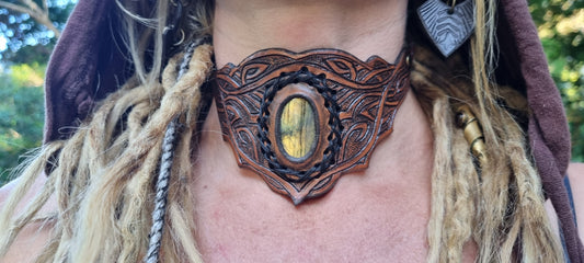 Carved leather organite choker/ necklace