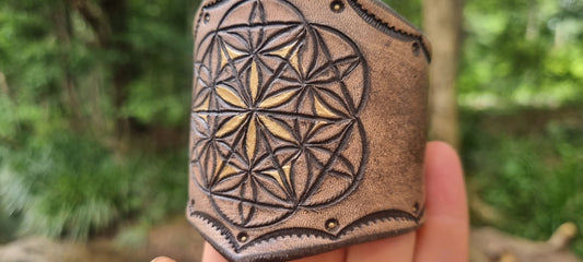 Sacred geometry leather cuff