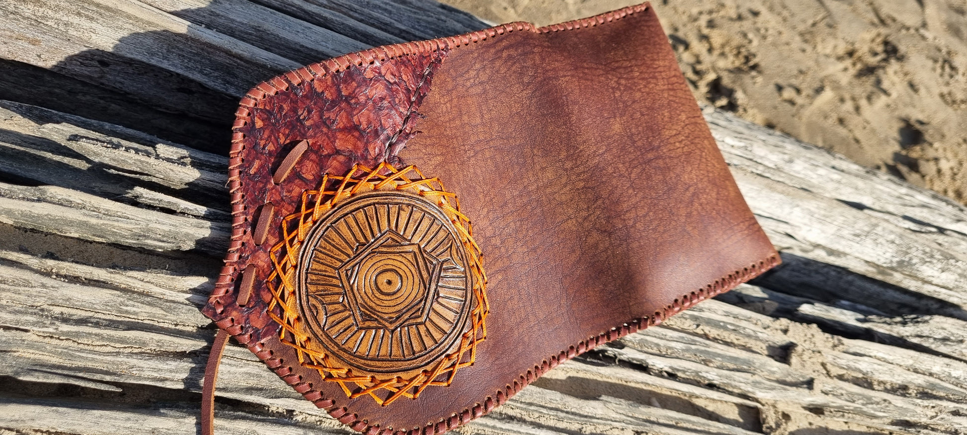 The sacred barramundi leather used in this pouch carries symbolic meaning, representing strength, adaptability, and resilience—qualities that are reflected in the pouch’s design and build.