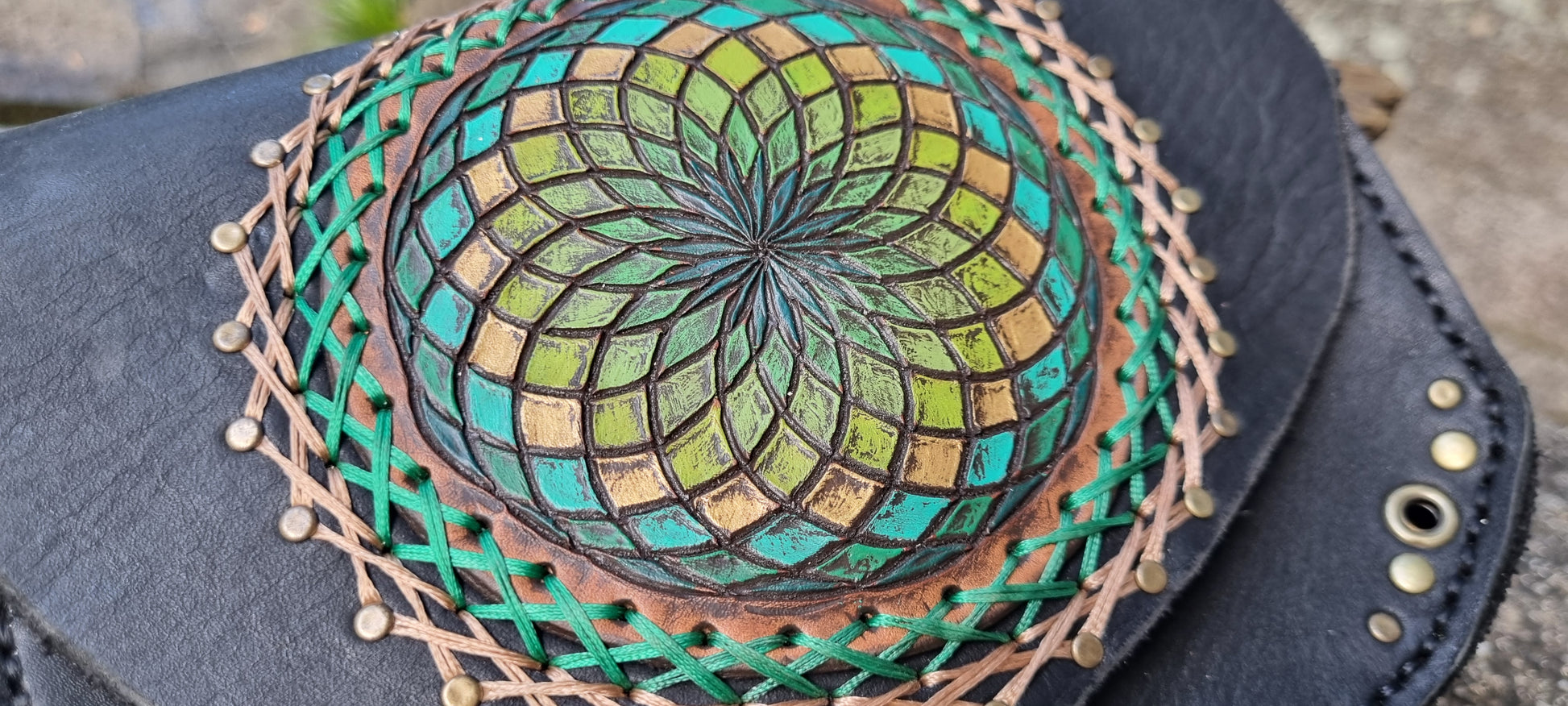 Elevate your style with this leather bum bag, designed for those who appreciate both function and unique craftsmanship. Featuring a Lotus of Life sacred geometric design, this bag is perfect for festivals, travel, or everyday use. Handcrafted with thick, high-quality leather, it’s a statement piece that combines artistic detail with practicality.