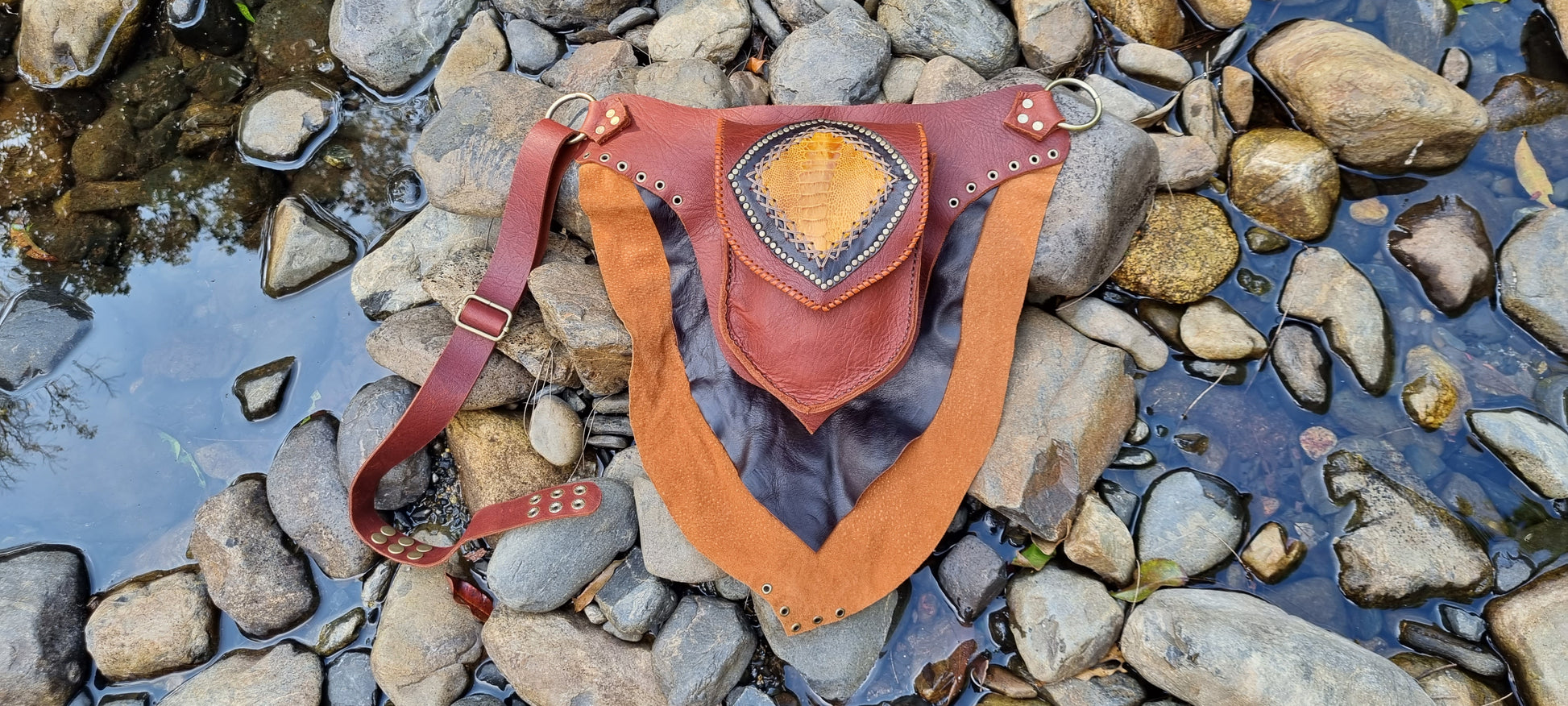 This handmade women's leather bum bag is the perfect companion for those who seek both style and purpose. Crafted from thick, durable leather, including sacred emu leather, this bag embodies strength, resilience, and protection, making it more than just a practical accessory—it’s a meaningful piece of craftsmanship designed to last a lifetime.